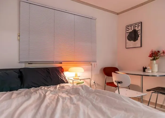 Maak uw verblijf nog aangenamer in Landimore_Sindang appartementen met een ingerichte kitchenette, ingericht met een waterkoker, een koelkast en keukengerei voor uw comfort. Jangchungcheyukgwan Front busstation is op circa 300 meter afstand van dit 1-badkamer appartement.